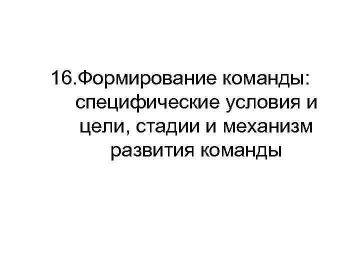 16. Формирование команды: специфические условия и цели, стадии и механизм развития команды
