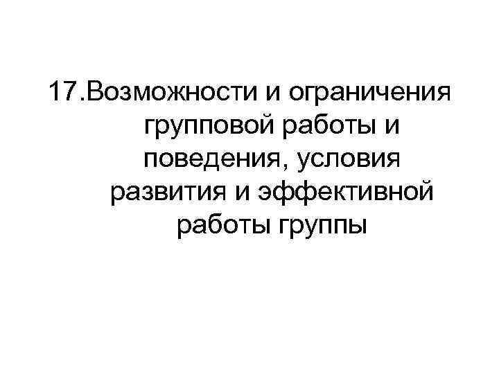 17. Возможности и ограничения групповой работы и поведения, условия развития и эффективной работы группы