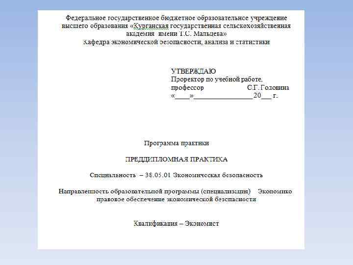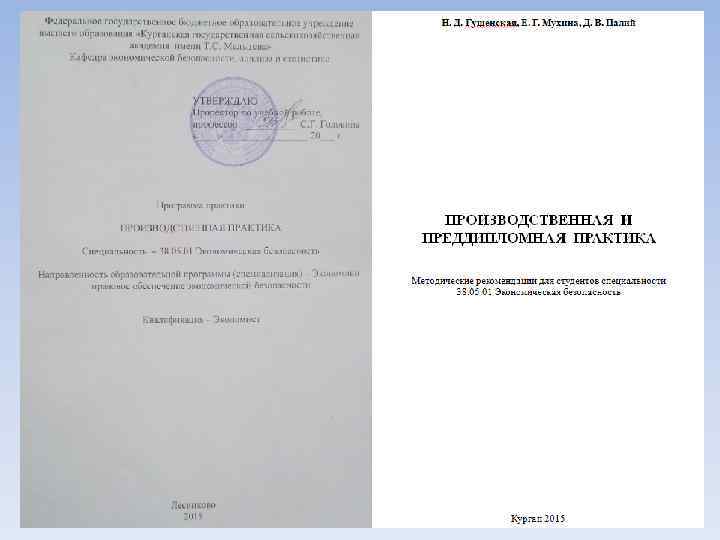 Оформление отчета о выполнение производственной практики должны соответствовать требованиям к оформлению выпускных квалификационных работ: Правила оформления и порядок подготовки выпускной квалификационной работы: методические рекомендации для студентов специальности 38. 05. 01 Экономическая безопасность / Составители: Мухина Е. Г. , Гущенская Н. Д. , Палий Д. В. - Курган: Изд-во КГСХА.