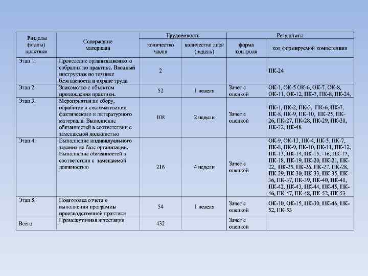 Этап 2. Знакомство с объектом прохождения практики. Содержание работ Общее ознакомление с организацией Анализ структуры управления организацией Ознакомление с правовой и нормативно-справочной документацией Оценка кадрового потенциала. Исследование системы управления персоналом и обеспечения кадровой безопасности Оценка системы информационной безопасности организации Этап 3. Мероприятия по сбору, обработке и систематизации фактического и литературного материала. Выполнение обязанностей в соответствии с замещаемой должностью Анализ деятельности организации Исследование и оценка функций, методов управления Этап 4. Выполнение индивидуального задания на базе организации. Выполнение обязанностей в соответствии с замещаемой должностью Обоснование актуальности и практической значимости выбранной темы исследования Изучение нормативно-справочной и правовой информации по теории и практике исследуемой проблемы Исследование системы планирования в организации Оценка эффективности управления в организации Диагностика состояния изучаемой проблемы и Обоснование мероприятий, направленных на решения выявленных проблем и оценка эффективности их реализации