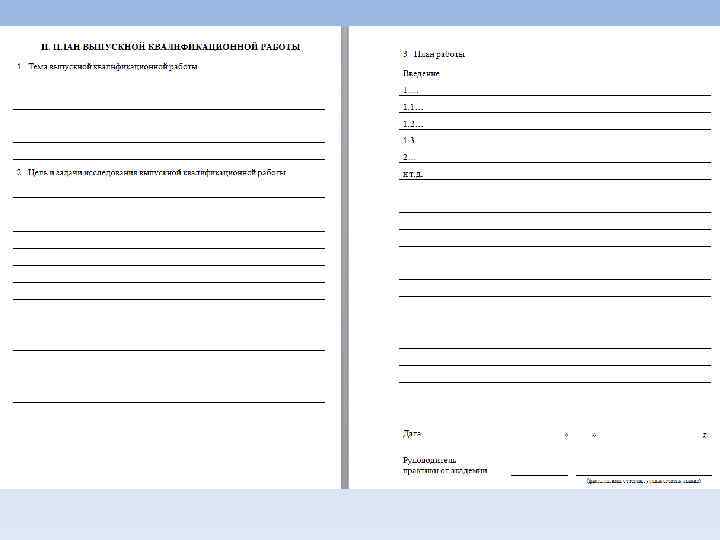 • Индивидуальное задание на практику д. б. заполнено руководителем практики от Академии до начала практики. • Индивидуальное задание соответствует теме выпускной квалификационной работы
