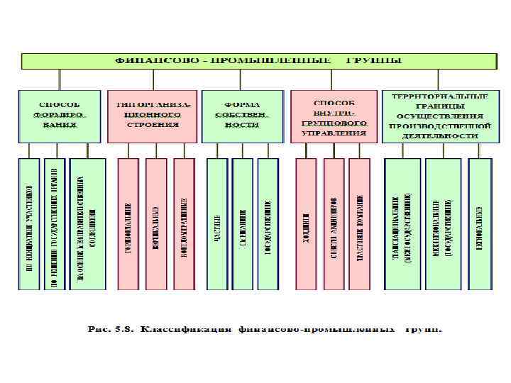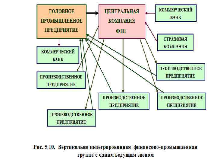 Синдикат – форма объединения компаний одной отрасли с целью заключения соглашения по контролю над сбытом продукции и закупкой сырья с целью получении монопольной прибыли. Трест – это форма объединения, при которой предприятия полностью утрачивают свою производственную и коммерческую самостоятельность. Создаются в виде акционерных обществ. ФПГ – это диверсифицированные многофункциональные структуры, созданные в результате объединения капиталов предприятий, кредитно-финансовых и инвестиционных институтов.