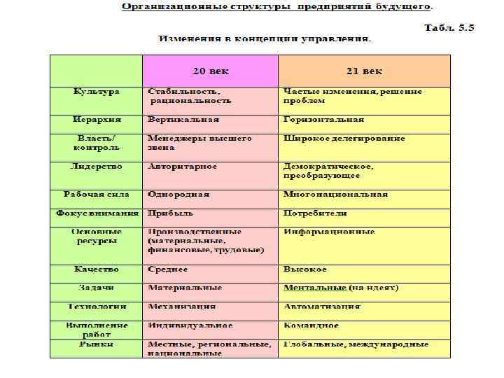 Характеристики и условия использования механистического и органического подходов в проектировании организации. Условия Характеристики Механистический тип организации Органический тип организации Узкая специализация в работе Работа по правилам Чёткие права и ответственность Чёткие уровни управления Объективная система вознаграждения Объективные критерии отбора кадров Формальные отношения официального характера Несложное стабильное окружение Цели и задачи известны Задачи можно разделить Простые и ясные задачи Работа измерима Оплата труда мотивирует Широкая специализация в работе Мало правил и процедур Широкая ответственность Уровни управления размыты Субъективная система вознаграждения Признаётся авторитет власти Авторитет власти завоёвывается личным авторитетом Субъективные критерии отбора кадров Неформальные отношения личностного характера Сложное нестабильное окружение Неопределённость целей и задач Задачи не имеют чётких границ Задачи сложные Работу сложно измерить Мотивируют высшие потребности