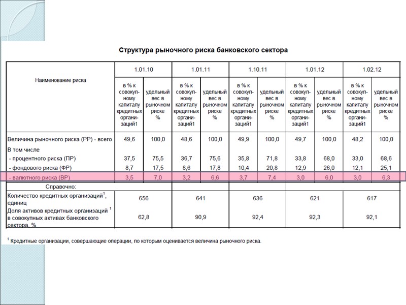 Короткая валютная позиция – сумма балансовых (внебалансовых) активов (требований) меньше суммы балансовых (внебалансовых) пассивов (обязательств) возникновение валютного риска при увеличении валютного курса Длинная валютная позиция – сумма балансовых (внебалансовых) активов (требований) превышает сумму балансовых (внебалансовых) пассивов (обязательств) возникновение валютного риска при снижении валютного курса Валютный риск - это вероятность возникновения у банка потерь, связанных с изменениями курсов иностранных валют на валютном рынке