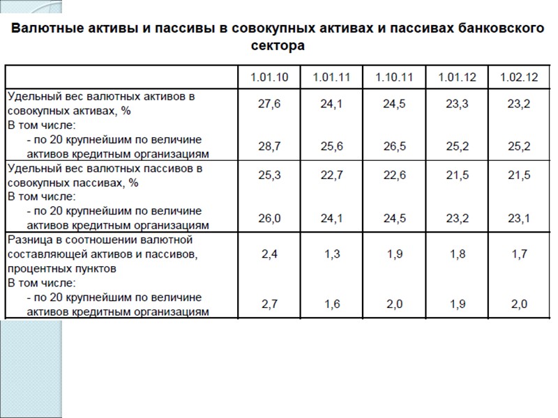 Внутреннее структурное подразделение кредитной организации (ее филиала) - ее (его) подразделение, расположенное вне места нахождения кредитной организации (ее филиала) и осуществляющее от ее имени банковские операции, перечень которых установлен нормативными актами Банка России, в рамках лицензии Банка России, выданной кредитной организации (ст. 22 ФЗ «О Б и БД») Валютная позиция – соотношение активов (требований) и пассивов (обязательств) банка Закрытая валютная позиция – сумма активов в иностранной валюте = сумме пассивов в иностранной валюте Открытая валютная позиция – сумма активов в иностранной валюте = сумме пассивов в иностранной валюте