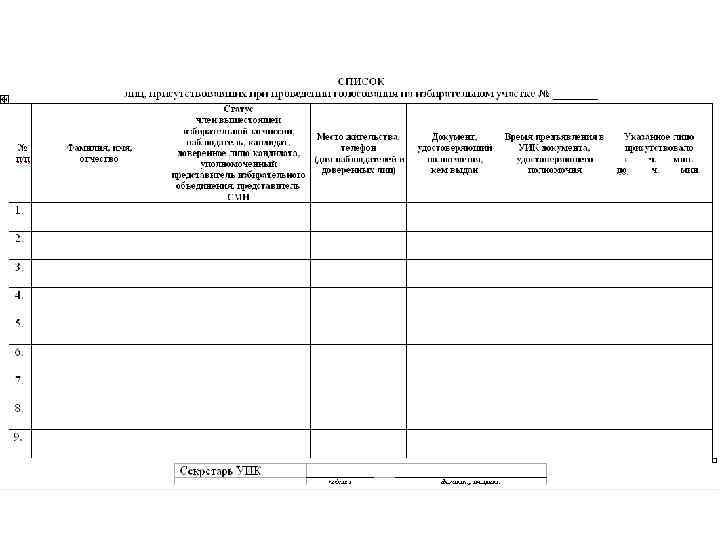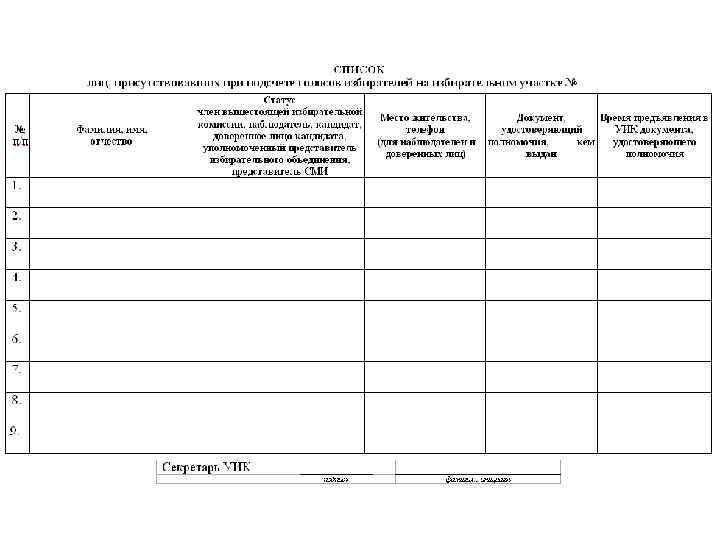 Шаг 7 Председатель УИК должен проинформировать присутствующих о количестве избирателей, внесенных в список избирателей, количестве полученных избирательных бюллетеней.