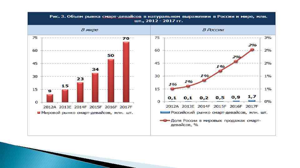 Выводы Суммарный российский рынок смарт-часов может достигнуть 1, 5 млн устройств к 2018 году. Вместе с развитием беспроводных технологий, ростом проникновения смартфонов и планшетов среди населения, развитием сенсорной, компонентной и системной интеграций рынок смарт-часов ждут большие перспективы на российском рынке высокотехнологичных носимых устройств.