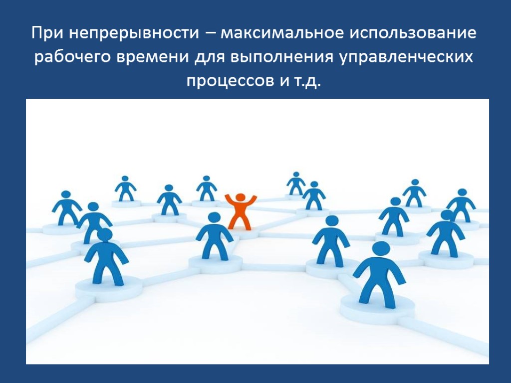 При непрерывности – максимальное использование рабочего времени для выполнения управленческих процессов и т.д.