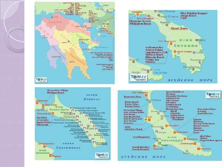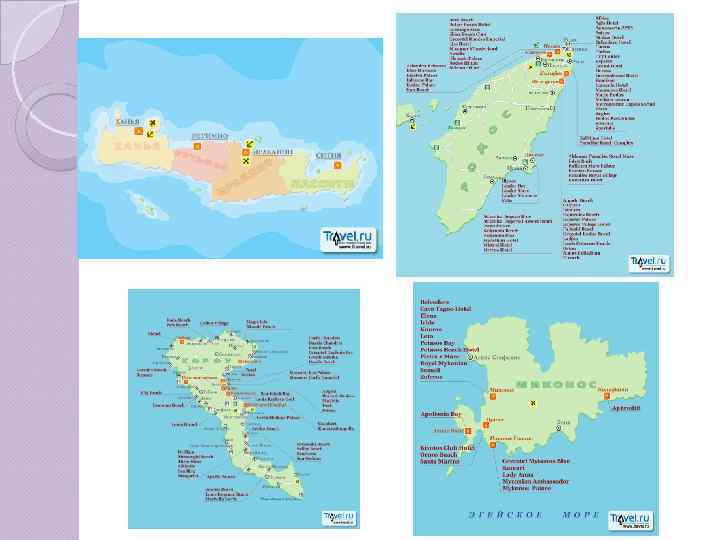 Греция Материковая часть Салоники П-в Халкидики Лутраки Глифада и Вульягмени П-в Пелопоннес О. Крит О. Корфу О. Родос О. Миконос О. Санторини
