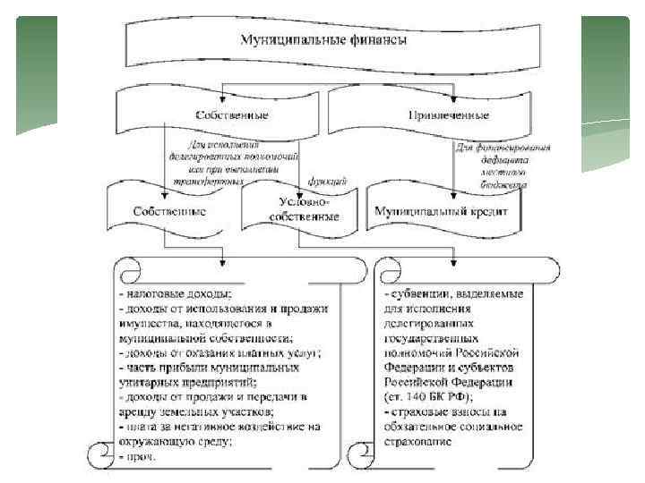Муниципальные финансы включают Ø средства местного бюджета; местного бюджета Ø муниципальные внебюджетные фонды; Ø государственные и муниципальные ценные бумаги, принадлежащие органам местного самоуправления; Ø другие денежные средства, денежные средства находящиеся в муниципальной собственности