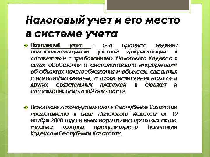ОРГАНИЗАЦИЯ НАЛОГОВОГО УЧЕТА