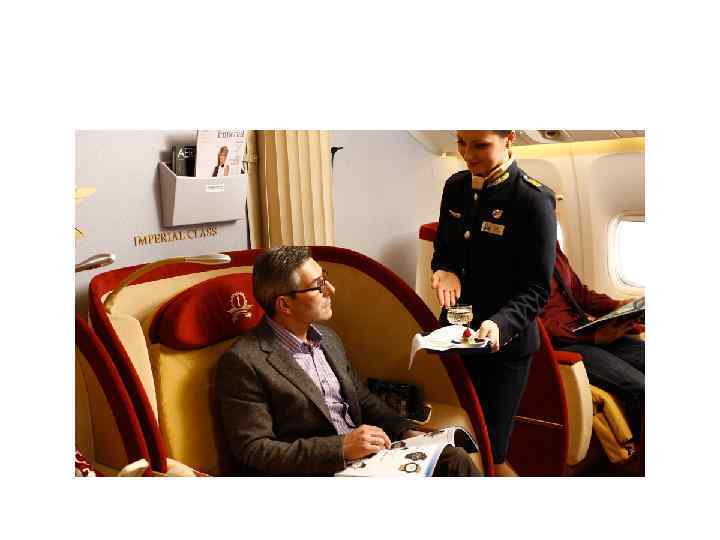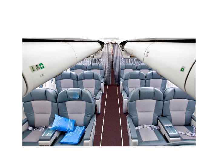 Классы обслуживания • Существуют три класса обслуживания на воздушном транспорте: экономический, бизнес- и первый класс. • Каждому классу обслуживания соответствуют классы бронирования, которые определяют уровень авиационного тарифа для данного класса бронирования.