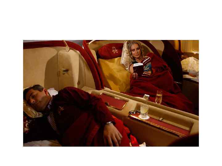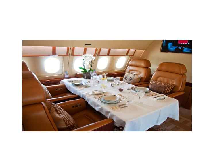 Самолет Бизнес-джет • Бизнес-джет – специальный самолет с турбореактивными двигателями business-jet, оборудованный для перевозки VIР-пассажиров, бизнесменов, государственных деятелей, музыкантов и др. • В мире эксплуатируется более 2000 больших реактивных лайнеров типа business-jet, в том числе в России – более 100. • За рубежом для этой цели чаще всего используются американские самолеты Cessna, французские – Falcom и британские – ВАе-125. • В России чаще всего эксплуатируют ЯК-40 с салоном, оборудованным под летающий офис.