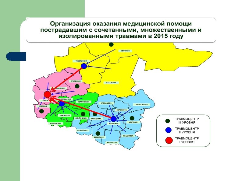 В рамках региональной программы „развития здравоохранения Тюменской области до 2020 года“ Создание координационных межрайонных центров для обеспечения взаимодействия подразделений скорой медицинской помощи в повседневной работе и при ЧС (г. Ишим, г. Тюмень, г. Тобольск) Увеличение числа отделений скорой медицинской помощи оснащенных автоматизированной системой управления, приема и обработки вызовов Развитие системы связи в том числе с использованием ГЛОНАС