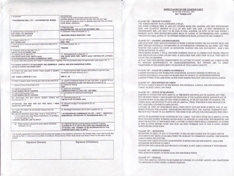 Организация перевозок внешнеторговых грузов с использованием нерегулярной формы судоходства
