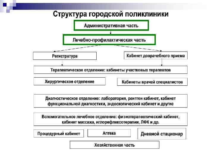 Уровни оказания медицинской помощи в Российской Федерации Медицинская помощь Учреждения здравоохранения (в соответствии с номенклатурой учреждений) Учреждения здравоохранения федеральных органов исполнительной власти Учреждения здравоохранения субъектов Российской Федерации Учреждения здравоохранения органов местного самоуправления - Федеральные специализированные медицинские учреждения - Областная, краевая, республиканская, окружная больница - Специализированное учреждение (диспансер, специализированная больница, поликлиника, госпиталь, центр) Муниципальный район - Амбулатория, Центр общей врачебной (семейной) практики, Участковая больница - Станция скорой медицинской помощи - Поликлиника, Районная больница, Центральная районная больница - Родильный дом, Женская консультация - Дом сестринского ухода, Хоспис Городской округ - Городская поликлиника, Центр, Городская больница - Больница скорой медицинской помощи - Родильный дом, Перинатальный центр, Женская консультация 2 - Дом сестринского ухода, Хоспис