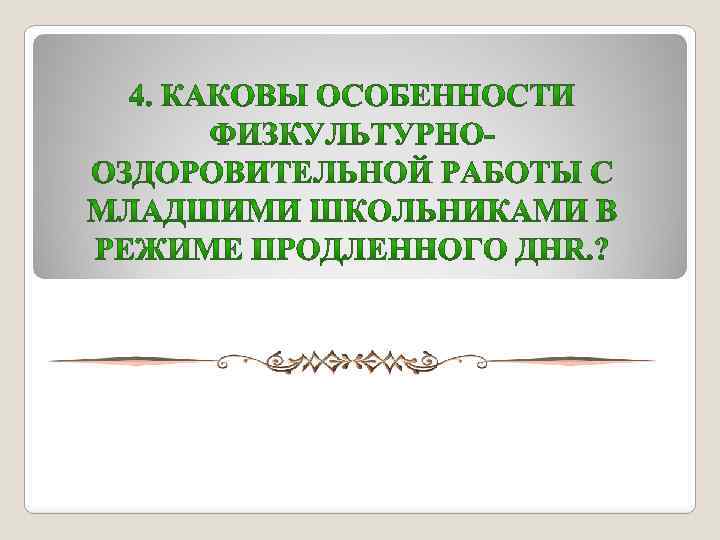 Режим группы продленного дня в начальной школе Взаимодействия воспитателя с детьми Режимные моменты познавательной, 3. Организация Ø организация игровой, спортивно активного оздоровительной деятельности отдыха на детей на прогулке; свежем воздухе Ø подведение итогов, детей в школу; возращение Ø контроль процесса раздевания детей после прогулки;