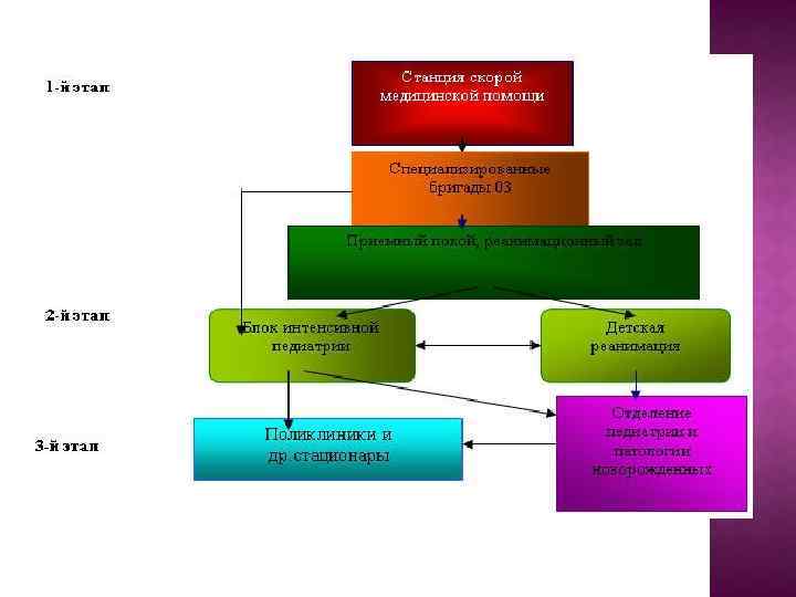 Специализированные бригады делятся на: кардиологические — предназначены для оказания экстренной кардиологической помощи и транспортировки больных с острой кардиопатологией (острый инфаркт миокарда, ишемическая болезнь сердца, гипертонический и гипотонический криз и т. д. ) в ближайшее стационарное лечебное учреждение; реанимационные — предназначены для оказания экстренной медицинской помощи при пограничных и терминальных состояниях, а также для транспортировки таких больных (пострадавших) в ближайшей стационар; педиатрические — предназначены для оказания экстренной медицинской помощи детям и транспортировки таких больных (пострадавших) в ближайшее детское лечебное учреждение (в педиатрических (детских) бригадах врач должен иметь соответствующее образование, а оснащение подразумевает большее разнообразие медицинского оборудования «детских» размеров);