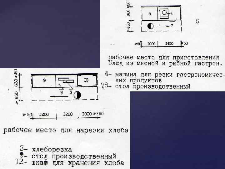 Производственные участки Учитывая, что в холодном цехе изготовляется продукция из продуктов, прошедших тепловую обработку, и из продуктов без дополнительной обработки, необходимо четко разграничить производство блюд из сырых и вареных овощей, из рыбы и мяса. На небольших предприятиях организуются универсальные рабочие места, на которых последовательно готовят холодные блюда в соответствии с производственной программой, в крупных холодных цехах организуются специализированные рабочие места. В холодных цехах ресторанов и других предприятий с широким ассортиментом холодных блюд и закусок выделяют технологические линии приготовления холодных блюд и закусок, сладких блюд и напитков. На этих линиях организуются раздельные рабочие места для приготовления салатов и винегретов; нарезки гастрономических мясных и рыбных продуктов; порционирования и оформления блюд; для приготовления заливных блюд; бутербродов; холодных супов; сладких блюд и напитков. Рабочие места следует располагать по ходу технологического процесса.
