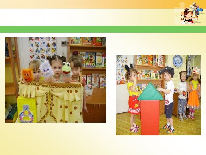 Театрализованный уголок Значение: Развитие коммуникативных навыков, развитие связной, диалогической речи, знакомство с окружающим миром и социальной действительностью, снятие тревожности, застенчивости, развитие эмоциональной сферы. • • Пальчиковый театр Кукольный театр Игры - драматизации Плоскостной театр на фланелеграфе