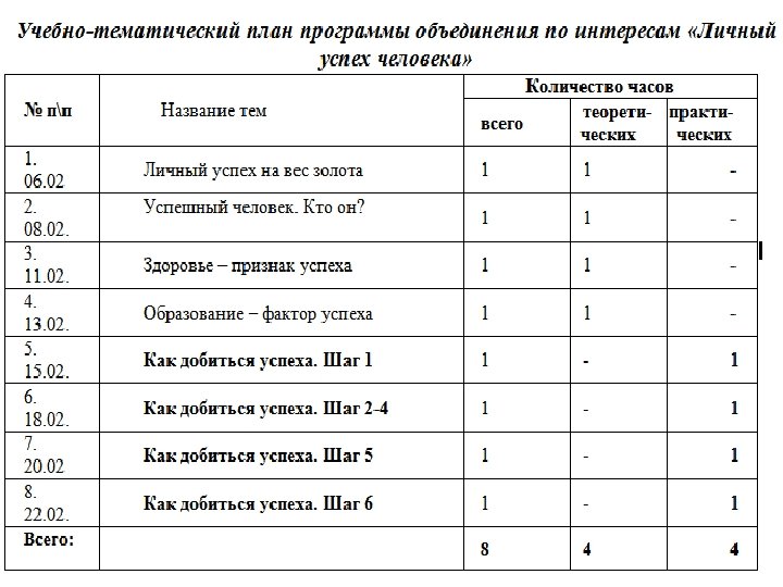 Программа занятий объединения по интересам «Личный успех человека» (ЛУЧ) Цель. Создание условий для самоопределения системы личностных ценностей и воспитания качеств успешного человека