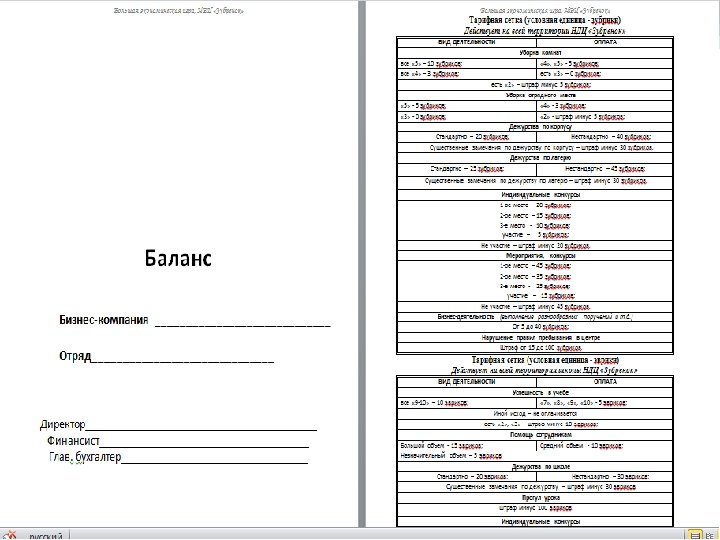 Описание сюжетно-ролевой модели Отряд представляет собой бизнескомпанию, основные задачи которой – создать предприятие, организовать его эффективную деятельность и стремится перейти на новый финансовый уровень, что он может осуществить, зарабатывая максимум прибыли. Для создания предприятия отряду потребуется первоначальный капитал, актуальная бизнесидея и, следовательно, бизнес-проект