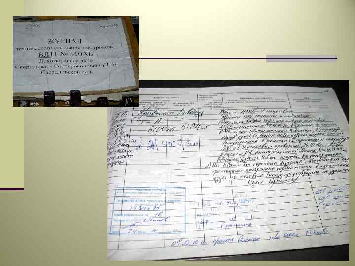 Сдача локомотива n После прибытия на станцию назначения машинист обязан сделать запись в журнале формы ТУ 152 об обнаруженных им неисправностях, снять скоростемерную ленту для передачи работнику депо, зафиксировать расход топлива или электроэнергии.