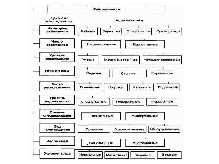 Рабочее место – это звено производственного участка. Классификация рабочих мест