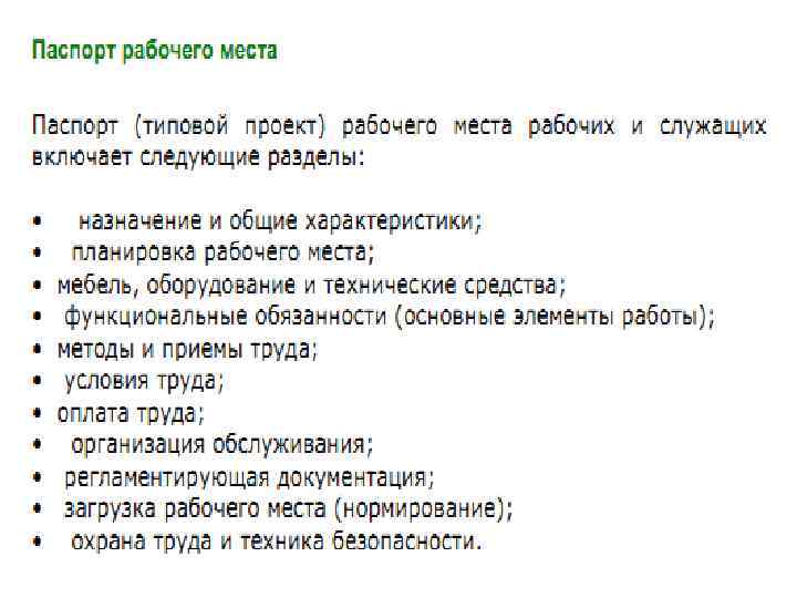 Паспорт рабочего места включает