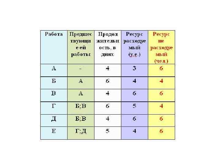 Алгоритм планирования ресурсов Исходными данными для планирования ресурсного обеспечения проекта является декомпозиция работ проекта и сетевая модель. Каждая работа в проекте требует для своей реализации ресурсы различного вида (трудовые, материально технические, финансовые и т. д. ). Следовательно, необходимо определить потребность каждой работы в конкретном виде ресурсов. 102