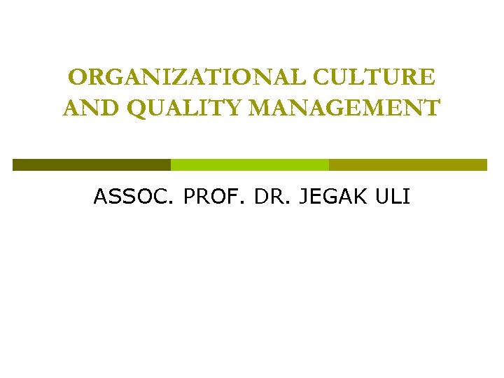 ORGANIZATIONAL CULTURE AND QUALITY MANAGEMENT ASSOC. PROF. DR. JEGAK ULI
