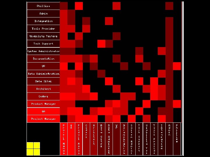 CRC Cards: Classes, Responsibilities, and Collaborators Subsystem coord. Validate MR lists Build group products Administer ENVY Resolve logical deps. Bell Laboratories Subsystem coord. Change committee Designers System test 11