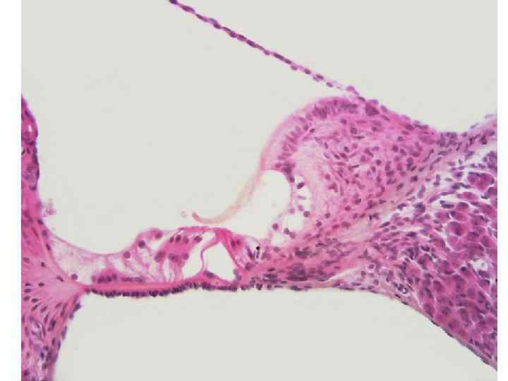 ЭМБРИОНАЛЬНОЕ РАЗВИТИЕ 3 неделя Ромбовидный мозгn Слуховая плакода 4 неделя Слуховой пузырёк mesoderm Слуховой пузырёк – эктодермальный эпителий