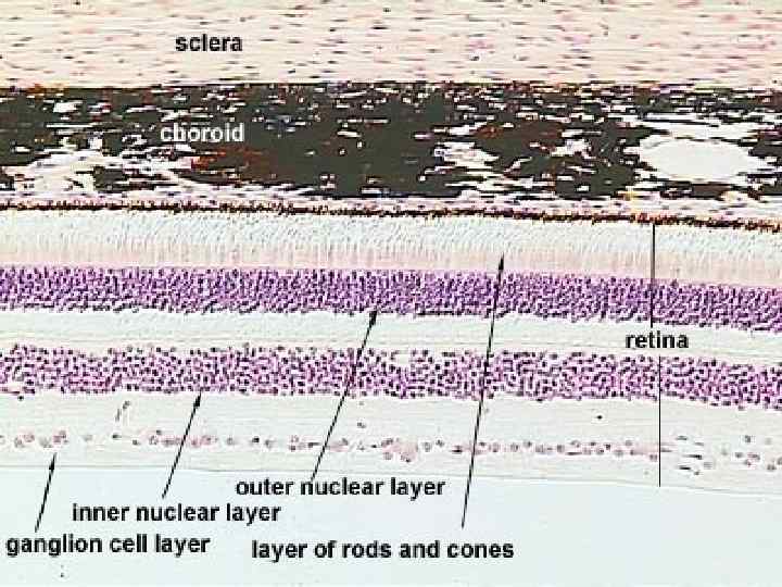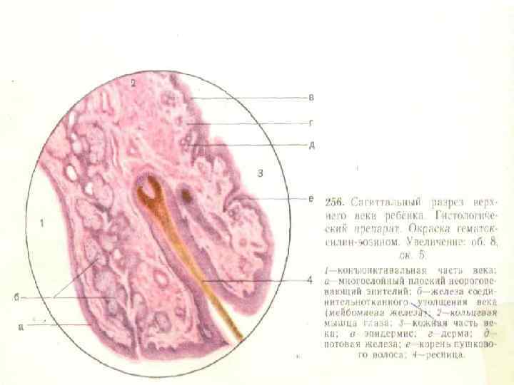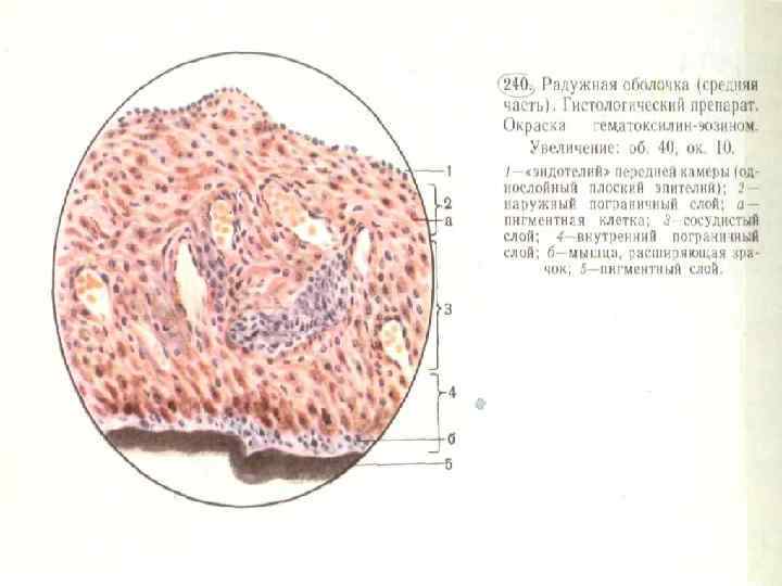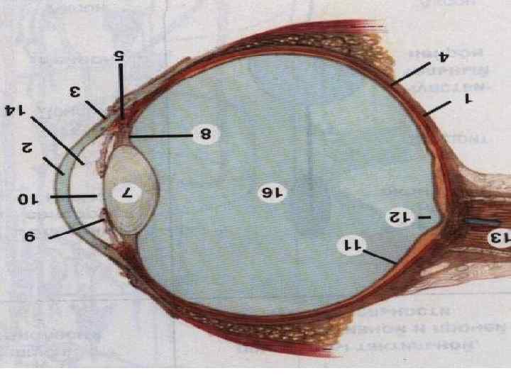 Угол глаза. Гистологический препарат. Окраска гематоксилинэозином. 1. раговица глаза; 2 передняя камера глазного яблока; 3 - радужная оболочка; 4 -задняя камера глазного яблока; 5 хрусталик; 6 - реснитчатый поясок (цинновая связка); 7 - стекловидное тело; 8 гребенчатая связка; 9 – венозный синус склеры (шлеммов канал); 10 реснитчатое тело; 11 белочная оболочка(склера); 12 – сосудистая оболочка; 13 -сетчатка.