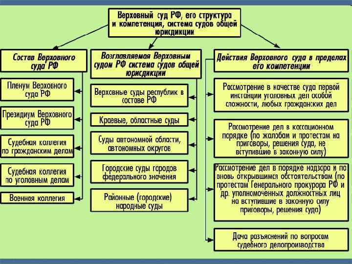 Система судебных органов Федеральные суды РФ Конституционный суд РФ Верховный суд РФ Высший Арбитражный суд Арбитражные суды Субъектов РФ Верховные суды Субъектов РФ Районные суды Суды субъектов федерации Мировые судьи Конституционные (уставные) Суды Субъектов РФ
