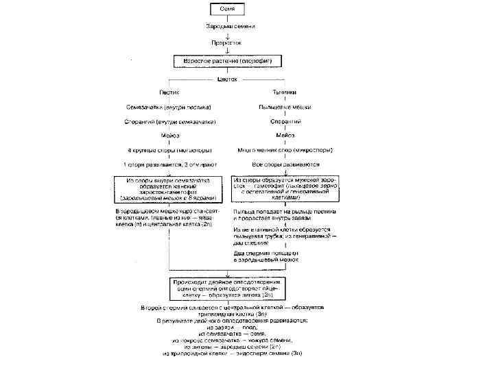 Материнские клетки микроспор делятся мейотически, в результате чего из каждой клетки образуются четыре гаплоидные микроспоры, составляющие тетраду. В дальнейшем тетрады распадаются на отдельные микроспоры. К этому времени каждая микроспора имеет две оболочки: наружную – экзину и внутреннюю – интину. Микроспора покрытосеменного растения – это одноядерная гаплоидная клетка, из которой внутри пыльника в результате одного деления образуются две клетки разного размера: маленькая генеративная и большая вегетативная. Так развивается весьма редуцированный мужской заросток – пыльцевое зерно, или пылинка.