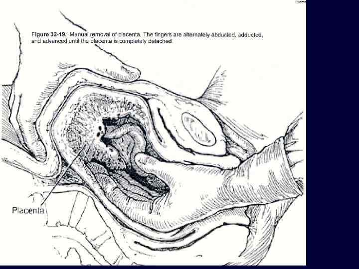 • При отсутствии признаков отделения плаценты – операция ручного отделения и выделения плаценты • Форму патологического прикрепления плаценты можно определить при попытке ее ручного отделения. при полном приращении плаценты кровотечения и признаков отслойки плаценты как правило нет, при частичном приращении плаценты обычно имеет место обильное маточное кровотечение.