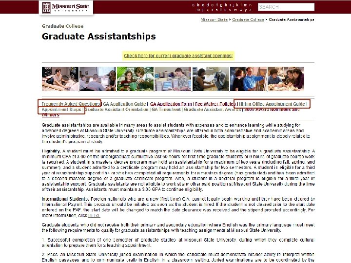 APPLICATION Students submit applications directly to the respective department RECRUITMENT & SELECTION Process set by the hiring department/office Postings may be placed on G. A. website (Send your posting as an email attachment to Carla Coorts)