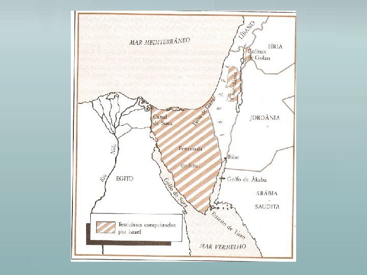 GUERRA DO YOM KIPPUR Ataque árabe ao estado de Israel buscando reaver os territórios ocupados durante a guerra dos 6 dias. O ataque ocorre no feriado religioso judaico, no dia do perdão. Síria Egito X Israel