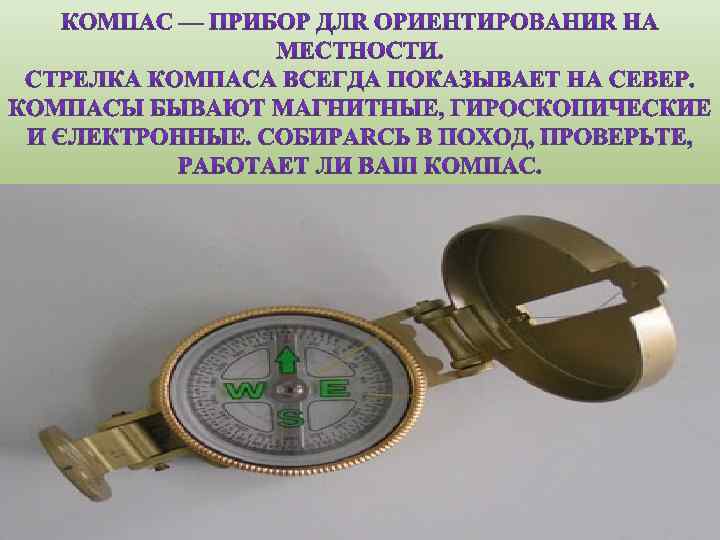 ОРИЕНТИРОВАНИЕ ПО КОМПАСУ По стране в поход идем — стрелка Друга мы с собой берем. Он не даст нам заблудиться, От маршрута уклониться. Нам покажет верный друг Путь на север и на юг. шкала