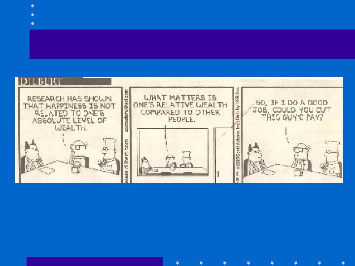 HAPPINESS • IMPORTANCE OF BASIC NEEDS • IMPORTANCE OF REFERENCE GROUPS • WHY DO PEOPLE WORK SO HARD? • “The desire for food is limited in every man by the narrow capacity of his stomach; but the desire of the conveniences and ornaments of building, dress, and furniture seems to have no limit or boundary” (Adam Smith 1776).