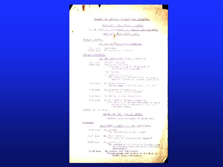 2 nd Meeting: Manchester Summer 1927 The second meeting was in Manchester on June 24 th and 25 th 1927, at the Salford Royal Hospital and the Manchester Royal Infirmary, though Jefferson, in a letter to Souttar, had said he thought it was too early to have it there. Cushing, himself, attended. SBNS Archives Harvey Cushing