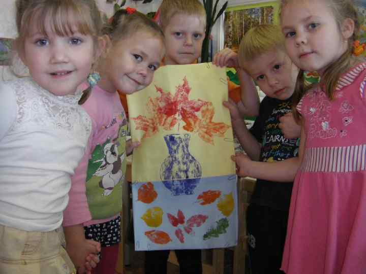 ЗАДАЧИ v учить располагать изображение на холсте v закреплять и обогащать представления детей о цветах и оттенках осенней природы v познакомить печати» детей с «техникой