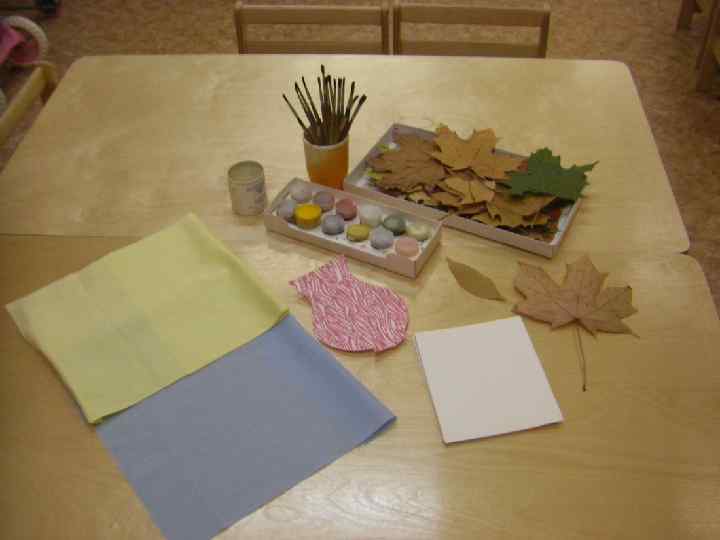 МАТЕРИАЛЫ И ОБОРУДОВАНИЕ v холст v сухие листья v гуашевые краски v кисти для рисования v стаканчики с водой v листы бумаги