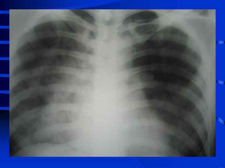 Клинические проявления • “Светлый промежуток” от момента воздействия этиологического фактора и началом клинических проявлений от нескольких часов до 2 - 3 суток • Одышка, цианоз, психомоторное возбуждение, тахикардия, артериальная гипертензия • Бронхиальный тип дыхания, рассеянные сухие и влажные хрипы
