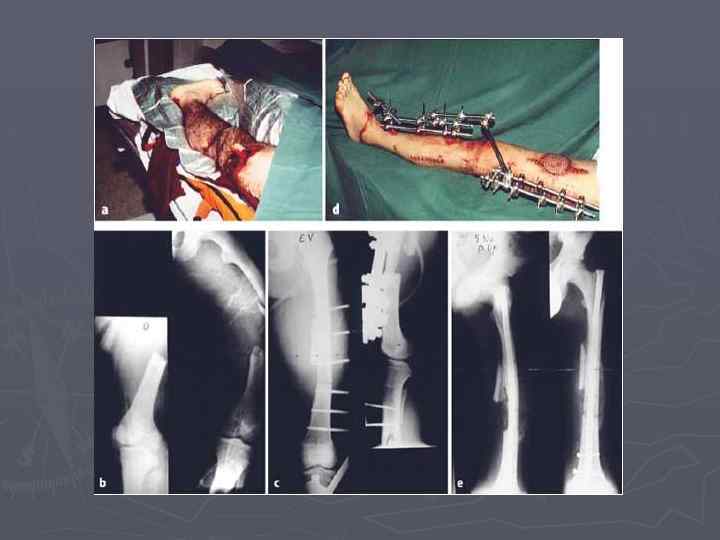 ЛЕЧЕНИЕ ► Ранняя оперативная стабилизация переломов является важнейшим аспектом в лечении пациентов с синдромом жировой эмболии после скелетной травмы. Поэтому необходимо как можно раньше производить остеосинтез компрессионно-дистракционным аппаратом.