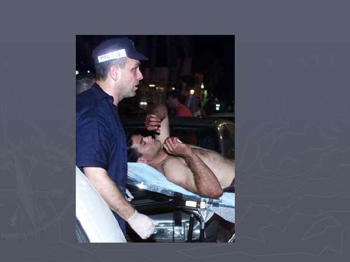 ► Первая помощь При оказании помощи необходимо помнить, что освобождение от сдавления является началом болезни. Поэтому до освобождения из-под завала необходимо наложить жгут на основании конечности. После декомпрессии конечность должна быть туго забинтована (лучше использовать эластичный жгут). После бинтования снимается жгут. Конечность обкладывают пузырями со льдом. Дается щелочное питье (питьевая сода), горячий чай. Эвакуировать пострадавших необходимо только лежа.