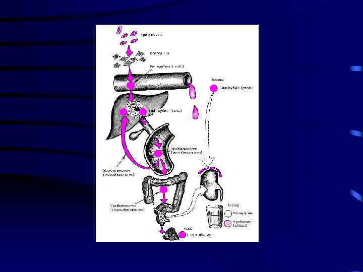 Лабораторные тесты • Ни один тест не может отдифференцировать каждый из вариантов желтухи, но есть общие комбинации печеночных тестов, которые помогают определить локализацию. Надпеченочная желтуха Общий билирубин Подпеченочная желтуха Увеличен Неконьюгированны Увеличен й билирубин Норма / Увеличен Норма Коньюгированный билирубин Норма Увеличен Норма / Увеличен Снижен / Отрицательный Цвет мочи Норма Тёмный Цвет стула Норма Обесцвеченный Щелочная фосфатаза Норма Увеличен АЛТ и АСТ Норма Увеличен Норма Уробилиноген Норма / Увеличен Печеночная желтуха
