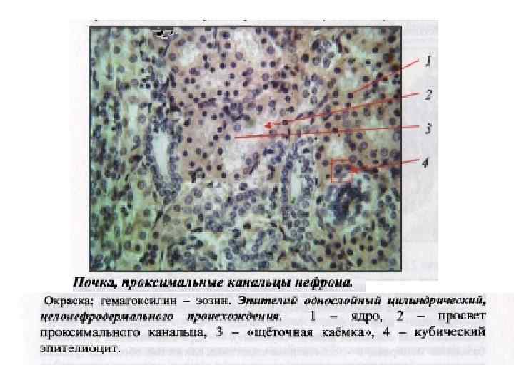 Рис. Эпителиальные клетки различных отделов нефрона и собирательной трубки