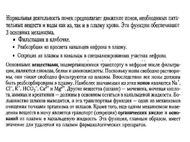 ФИЛЬТРАЦИОННЫЙ БАРЬЕР Фильтрационный барьер состоит из эндотелия капилляров, базальной мембраны и фильтрационных щелей между ножками подоцитов. Фильтрационные щели, затянутые щелевыми диафрагмами, — главная часть барьера. Поток жидкости сквозь барьер обеспечивается её гидростатическим давлением. Это давление понижается онкотическим давлением белков плазмы. Эндотелиальные клетки капилляров клубочка максимально уплощены, за исключением области, содержащей ядро. Уплощённая часть клетки содержит не затянутые диафрагмой фенестры полигональной формы диаметром 70– 90 нм, занимающие примерно 30% всей поверхности клетки. В результате плазма крови непосредственно контактирует с базальной мембраной. Базальная мембрана толщиной до 300 нм, общая для подоцитов и эндотелия капилляров, формируется в основном за счёт синтетической деятельности подоцитов. В базальной мембране различают три слоя, средний из которых — наиболее толстый и электроноплотный. Основу базальной мембраны образует мелкоячеистая сеть, образованная молекулами коллагена типа IV, ламинина, нидогена. Отрицательно заряженные цепи гепарансульфата, присутствующие в составе протеогликанов базальной мембраны, препятствует прохождению сквозь неё анионных белков плазмы. Щелевая диафрагма Белки щелевой диафрагмы (мембраны) образуют не просто статичный фильтр, но и составляют динамичный комплекс, участвуя в регуляторных сигнальных путях, необходимых для поддержания структуры и функционирования фильтрационного барьера, а также для регуляции комплексных биологических программ в подоците (организация цитоскелета, эндоцитоз, дифференцировка и подавление пролиферации, жизнеспособность подоцитов). Мутации генов, кодирующих белки щелевой диафрагмы, вызывают нарушения в её структуре и функционировании и, как следствие, нарушения фильтрации и развитие нефротических синдромов. Болезни фильтрационного барьера — главная причина конечной стадии почечной недостаточности.
